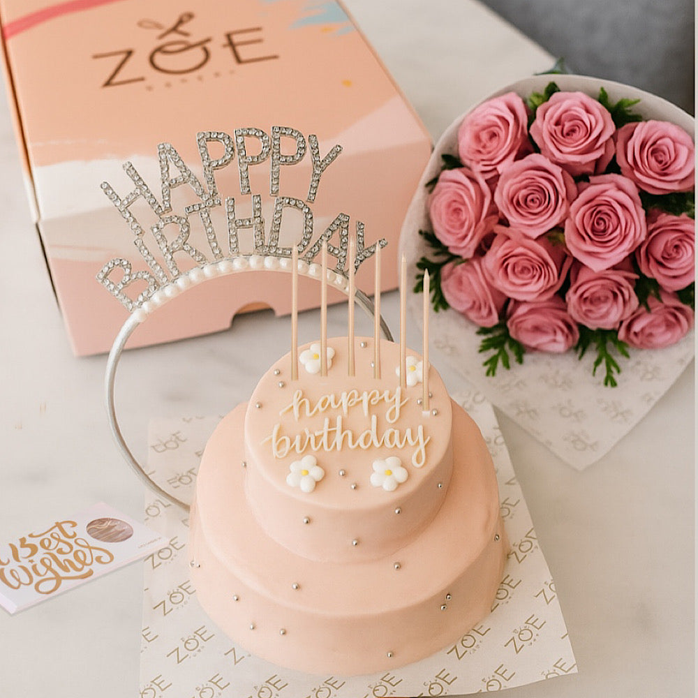 مع شمعة، بوكية زهور، و تاج للشعر بعبارة