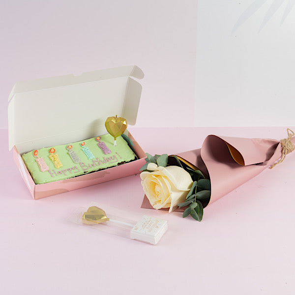 Chocolate brownies with a lovely design and a golden heart shaped candle